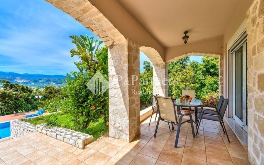 Villa for sale, 370 sq.m., on a plot of 6300 sq.m., in Galatas, Chania, Crete. It is on two levels and in excellent condition. More specifically, on the ground floor we find a single space which consists of a living room, a dining room, a kitchen equipped with electrical appliances and a bathroom. Going up to the 1st Floor, through the Internal Staircase, we have Four Spacious Bedrooms, Playroom and Bathroom. The Frames are Aluminum with Double Glazing, Screens and Autonomous Oil Heating. Additional features include Security Door, Solar Water Heater, Air Conditioning in all Bedrooms, Fireplace, Satellite Antenna, Cable TV, Storage and Parking Space. It also has Exclusive use of a garden with a swimming pool as well as a tennis court. This Property is suitable both for Permanent and Country Residence as well as for Investment use. It is located 5 km from the center of Chania and 4 km from the beaches of Agioi Apostoloi and Chrysi Akti. Access to the island of Crete can be done either by Air (1 hour) or by Ferry from the port of Piraeus to Chania (8 hours). P & Partners Real Estate, www.ppartners.gr, e-mail: info@ppartners.gr, Tel: 211 182 33 66